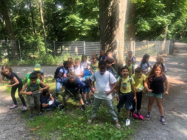 Wir sind durch den Wald gelaufen und haben Zettel mit Buchstaben gesucht.